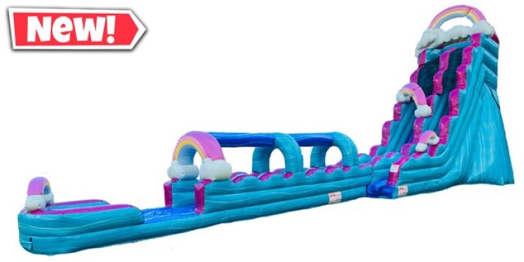 XL Rainbow Falls is a large, eye-catching inflatable play attraction built for splashy fun and big-group entertainment. Designed with bright, multicolored panels and an extra-tall sliding chute, it combines a roomy bounce area with a long, gentle slide that finishes in a shallow splash or soft landing zone. Safety features typically include tall mesh sidewalls for visibility, padded entrance and exit points, and reinforced seams and anchoring points to keep the slide stable during active use. Ideal for summer parties, school events, or any celebration where a bright, festive centerpiece is wanted, XL Rainbow Falls delivers colorful thrills and splashy finishes while keeping play safe and straightforward for hosts and parents.